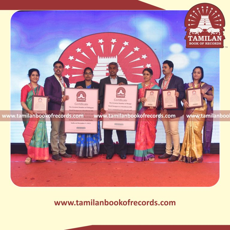 Greatest Number of Thilagam Motif Designs in a Handloom Silk Saree