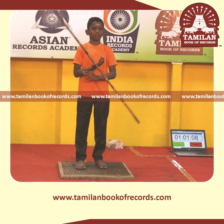 Longest Silambam Marathon (Ullveechu) on a Nail Bed by an Individual (Minor-Male)
