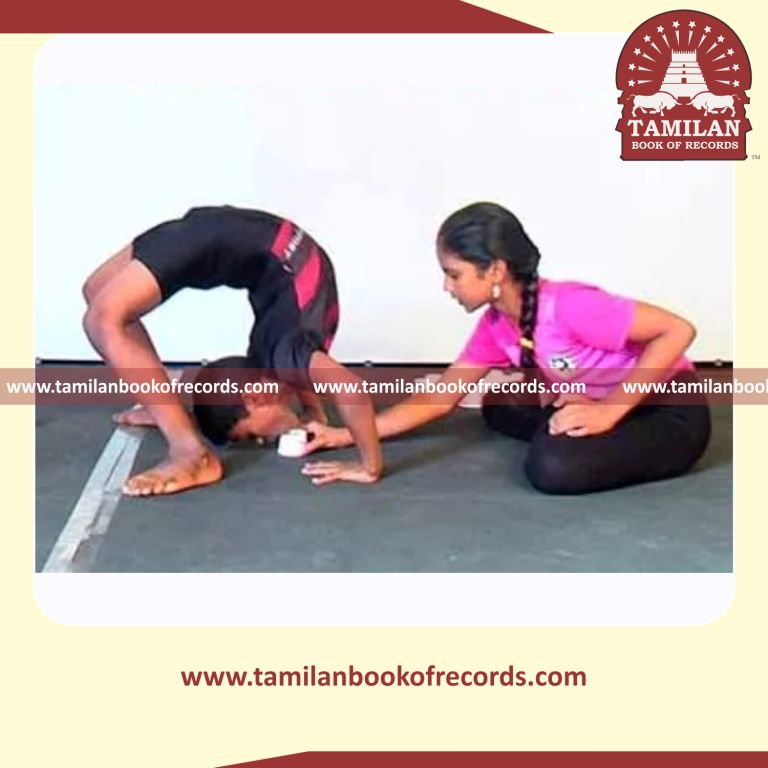 Greatest Number of Paper Cups Picked with Mouth in Chakrasana Yoga Pose in One Minute by an Individual (Minor-Male)