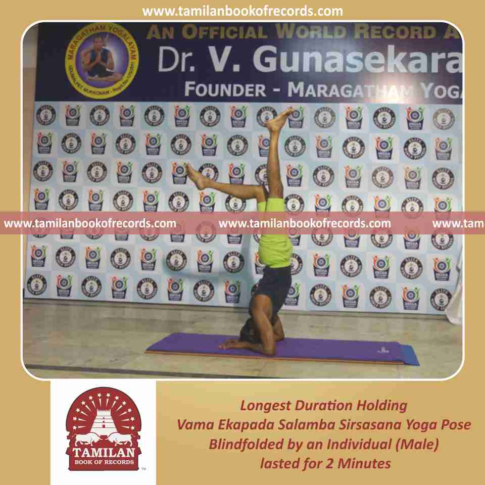 Longest Duration Holding Vama Ekapada Salamba Sirsasana Yoga Pose Blindfolded by an Individual (Male)