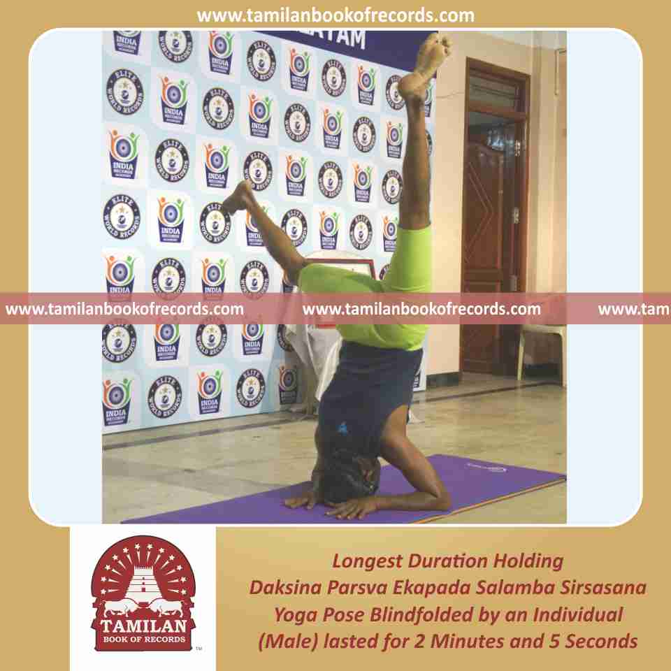 Longest Duration Holding Daksina Parsva Ekapada Salamba Sirsasana Yoga Pose Blindfolded by an Individual (Male)