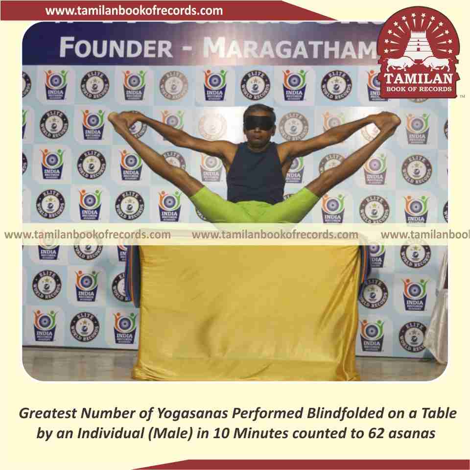 Greatest Number of Yogasanas Performed Blindfolded on a Table by an Individual (Male) in 10 Minutes