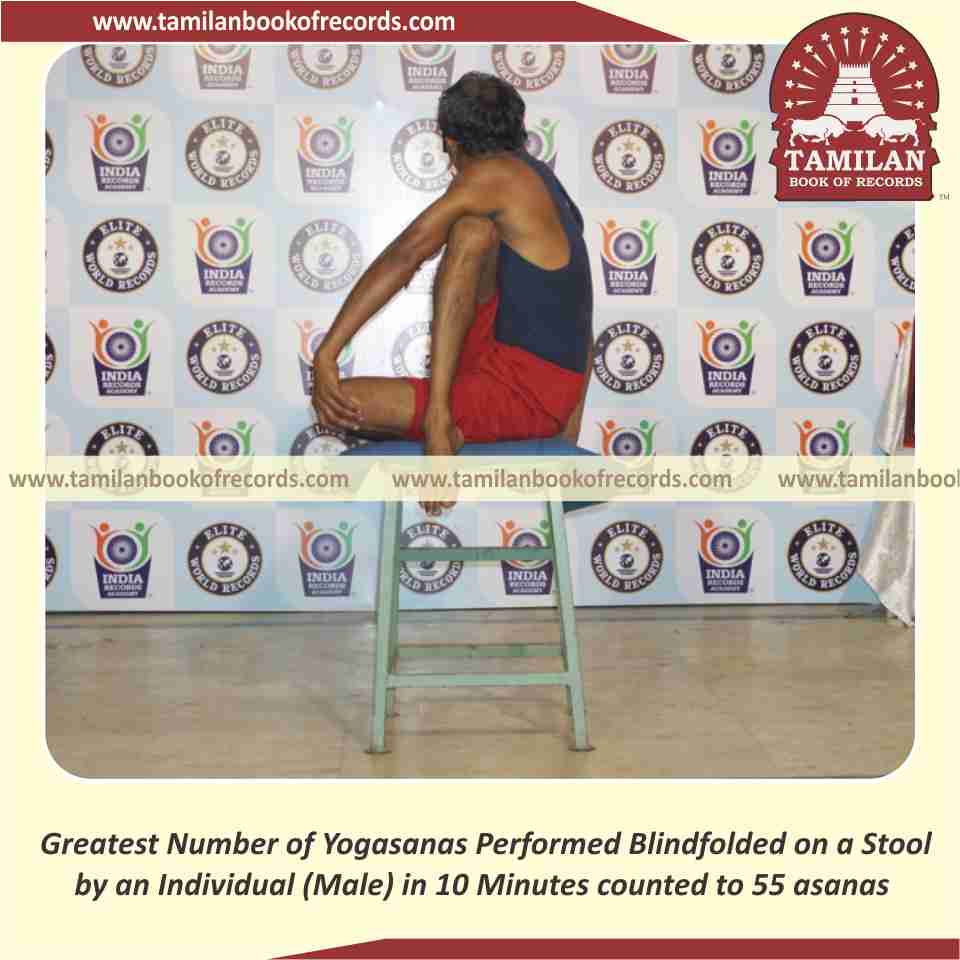Greatest Number of Yogasanas Performed Blindfolded on a Stool by an Individual (Male) in 10 Minutes