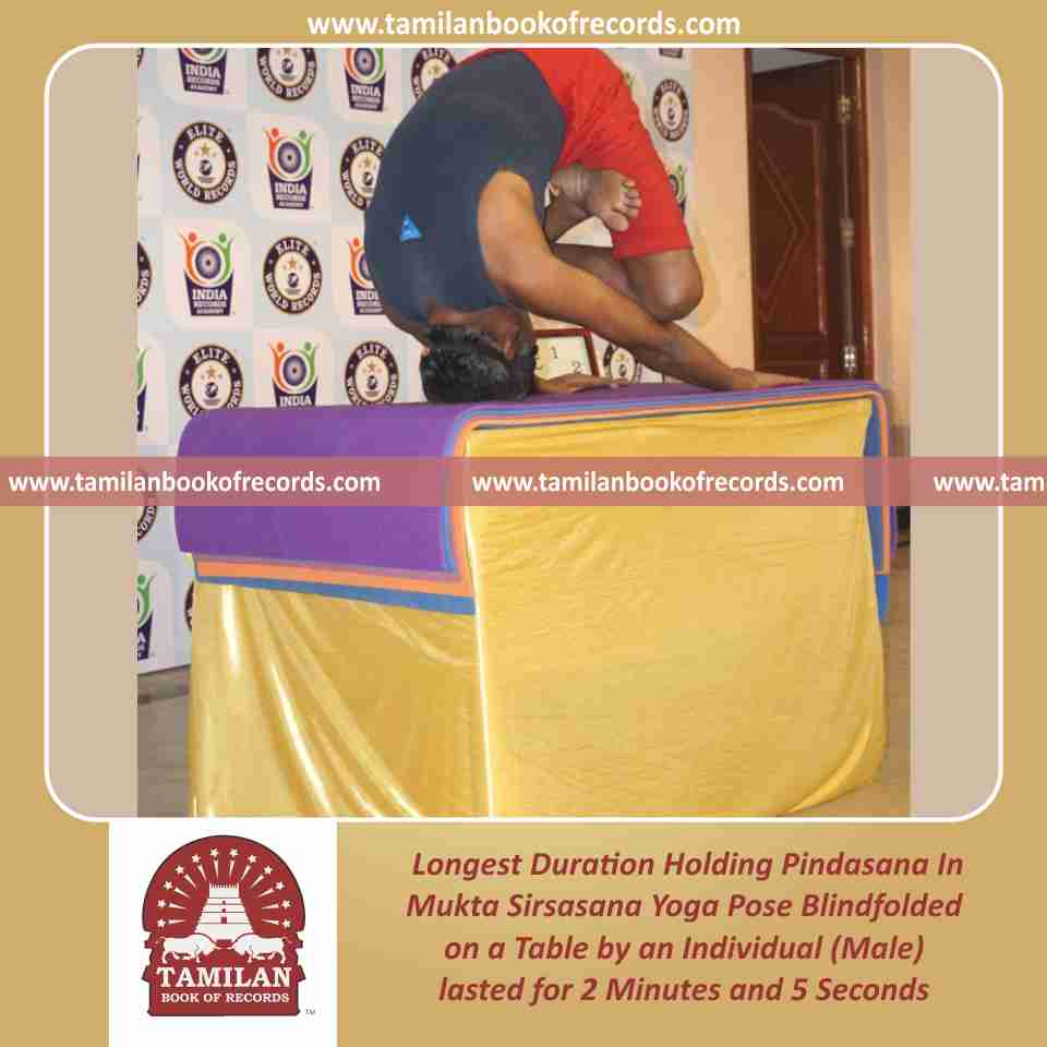 Longest Duration Holding Pindasana In Mukta Sirsasana Yoga Pose Blindfolded on a Table by an Individual (Male)