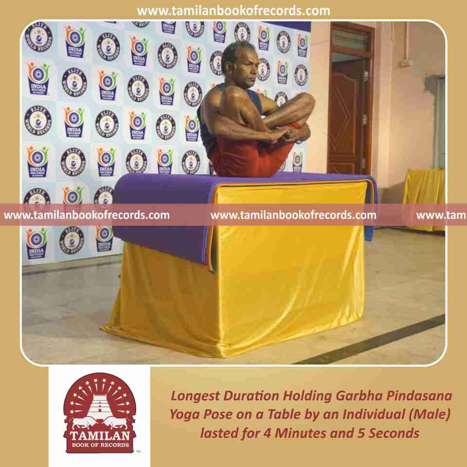 Longest Duration Holding Garbha Pindasana Yoga Pose on a Table by an Individual (Male)