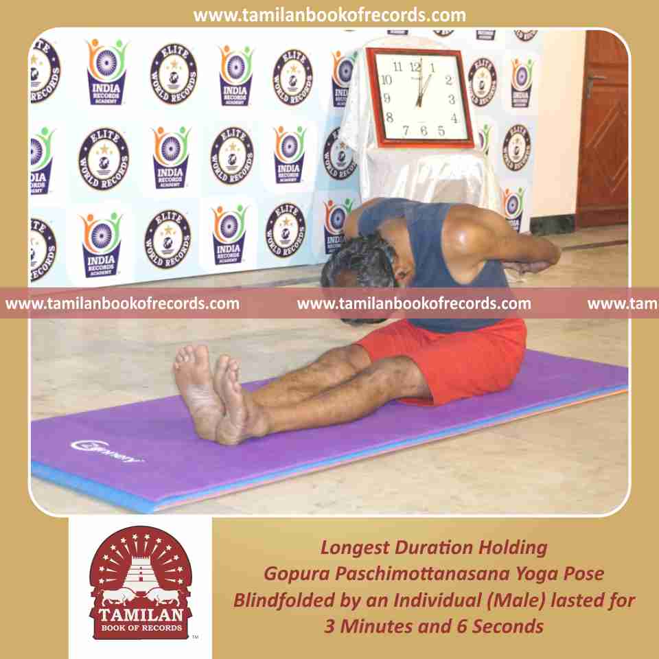 Longest Duration Holding Gopura Paschimottanasana Yoga Pose Blindfolded by an Individual (Male)