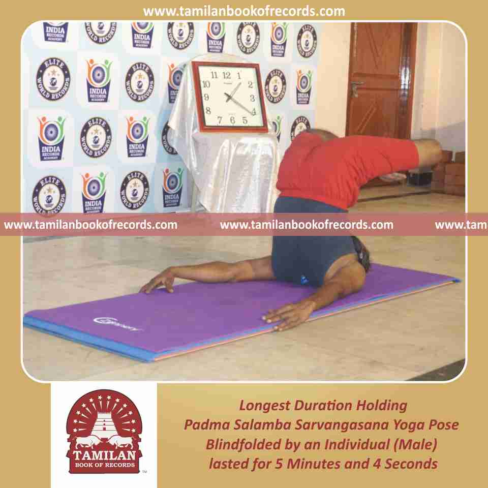 Longest Duration Holding Padma Salamba Sarvangasana Yoga Pose Blindfolded by an Individual (Male)