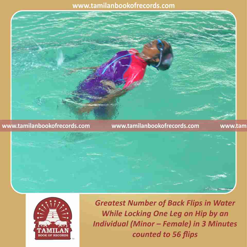 Greatest Number of Back Flips in Water While Locking One Leg on Hip by an Individual (Minor – Female) in 3 Minutes