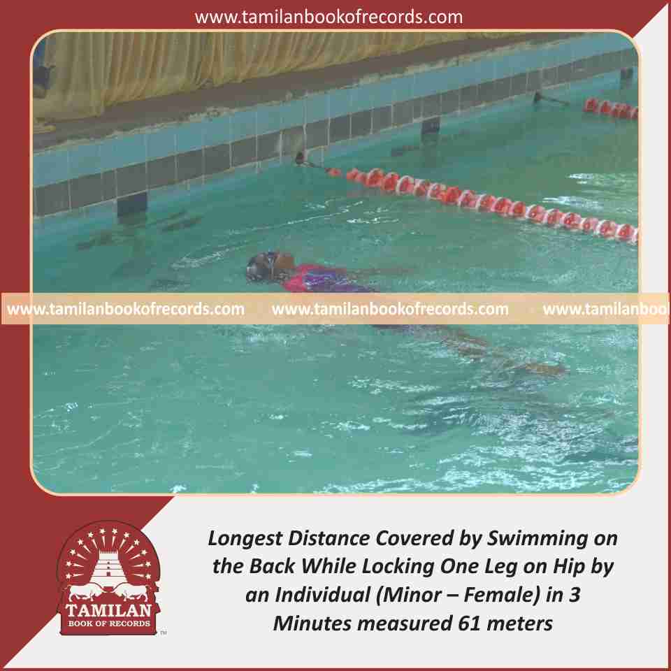 Longest Distance Covered by Swimming on the Back While Locking One Leg on Hip by an Individual (Minor – Female) in 3 Minutes