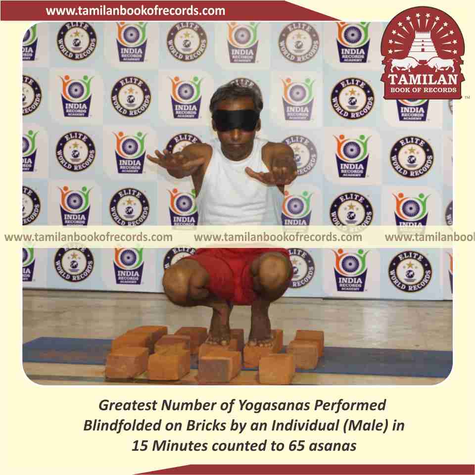 Greatest Number of Yogasanas Performed Blindfolded on Bricks by an Individual (Male) in 15 Minutes