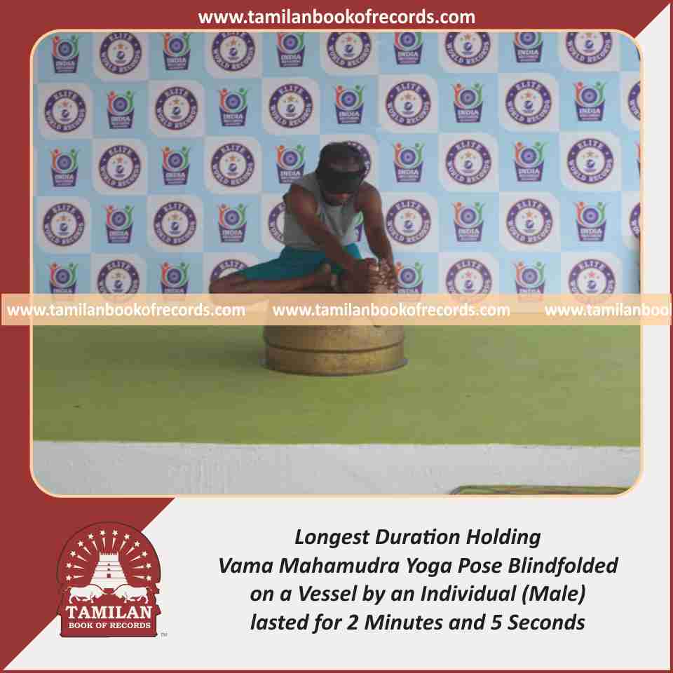 Longest Duration Holding Vama Ekapada Padahastasana Yoga Pose Blindfolded on a Brass Plate by an Individual (Male)