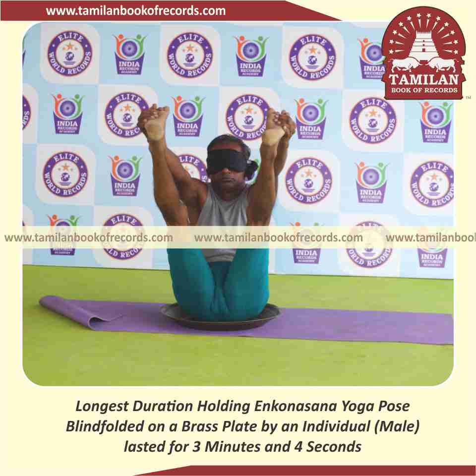 Longest Duration Holding Enkonasana Yoga Pose Blindfolded on a Brass Plate by an Individual (Male)