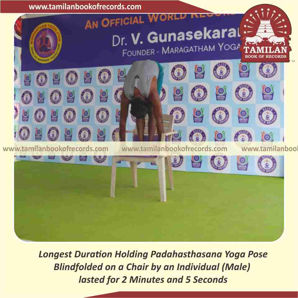 Longest Duration Holding Padahasthasana Yoga Pose Blindfolded on a Chair by an Individual (Male)