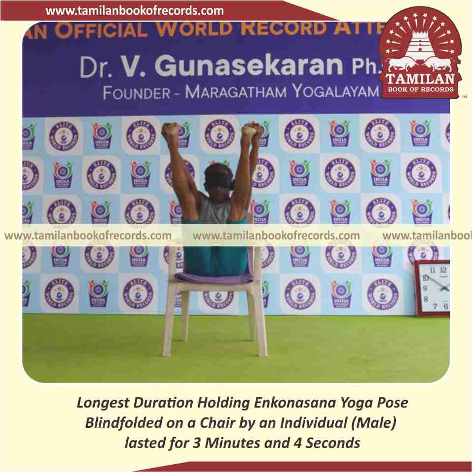 Longest Duration Holding Enkonasana Yoga Pose Blindfolded on a Chair by an Individual (Male)