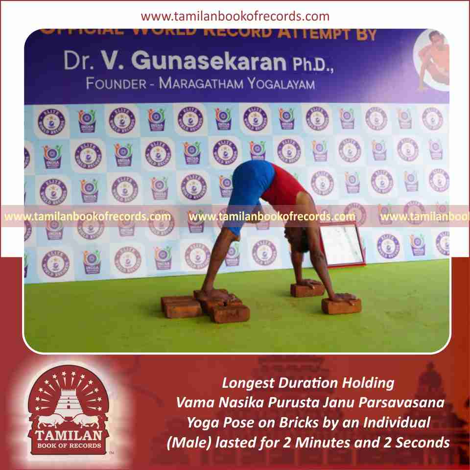 Longest Duration Holding Padahasthasana Yoga Pose on Bricks by an Individual (Male)
