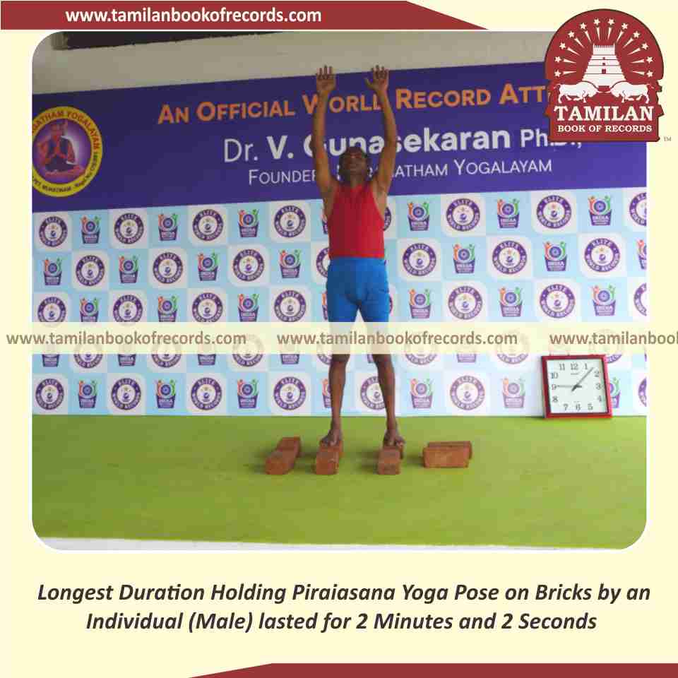 Longest Duration Holding Piraiasana Yoga Pose on Bricks by an Individual (Male)