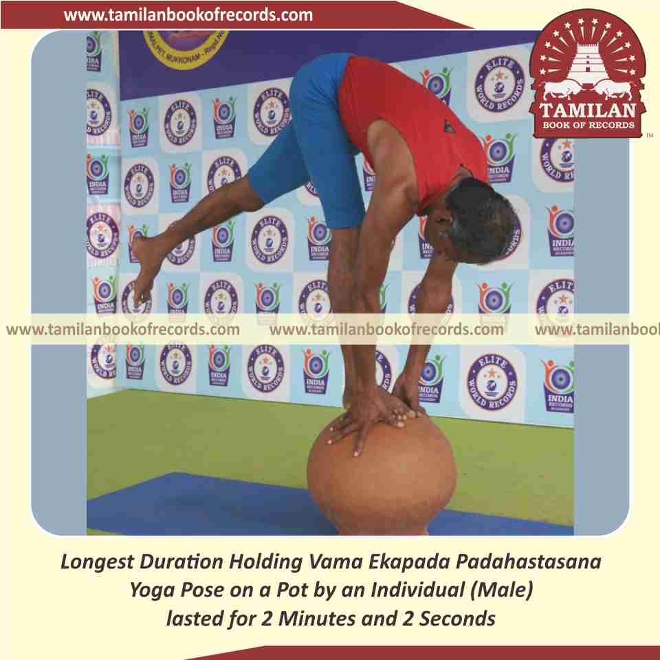 Longest Duration Holding Vama Ekapada Padahastasana Yoga Pose on a Pot by an Individual (Male)