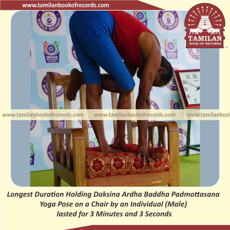 Longest Duration Holding Daksina Ardha Baddha Padmottasana Yoga Pose on a Chair by an Individual (Male)