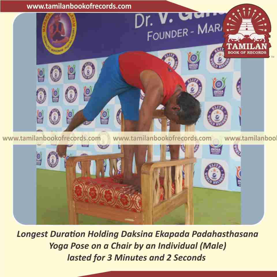 Longest Duration Holding Daksina Ekapada Padahasthasana Yoga Pose on a Chair by an Individual (Male)