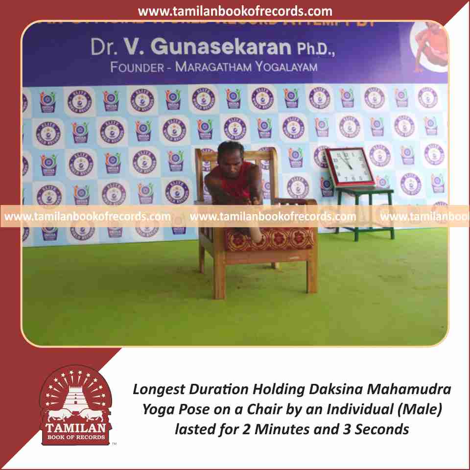 Longest Duration Holding Daksina Mahamudra Yoga Pose on a Chair by an Individual (Male)
