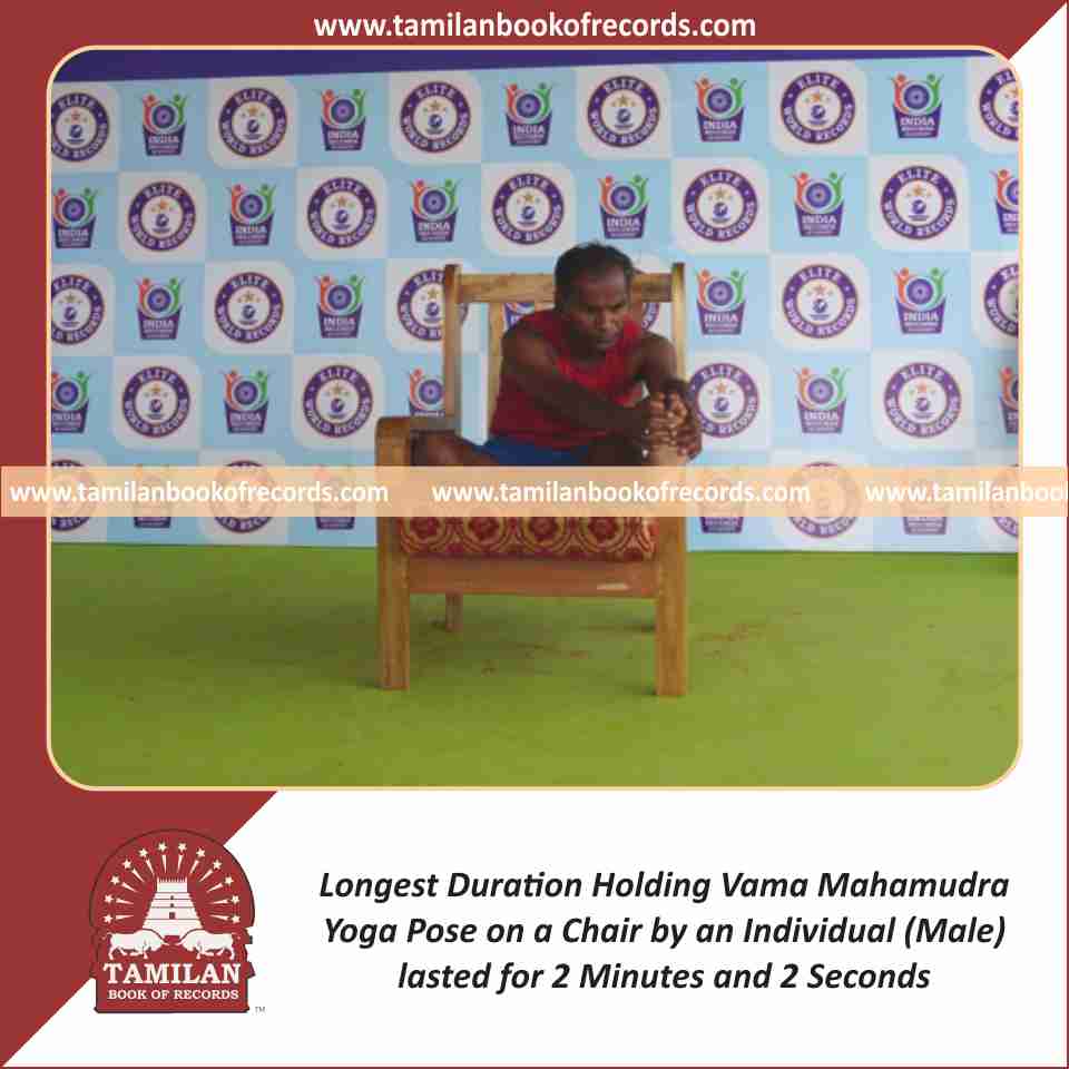 Longest Duration Holding Vama Mahamudra Yoga Pose on a Chair by an Individual (Male)