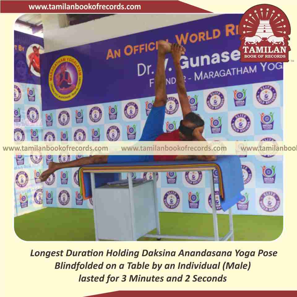 Longest Duration Holding Daksina Anandasana Yoga Pose Blindfolded on a Table by an Individual (Male)