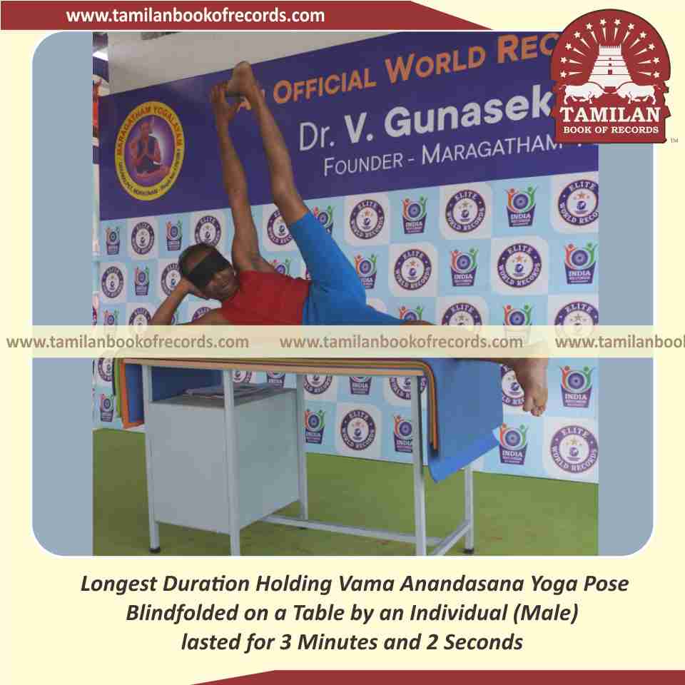 Longest Duration Holding Vama Anandasana Yoga Pose Blindfolded on a Table by an Individual (Male)