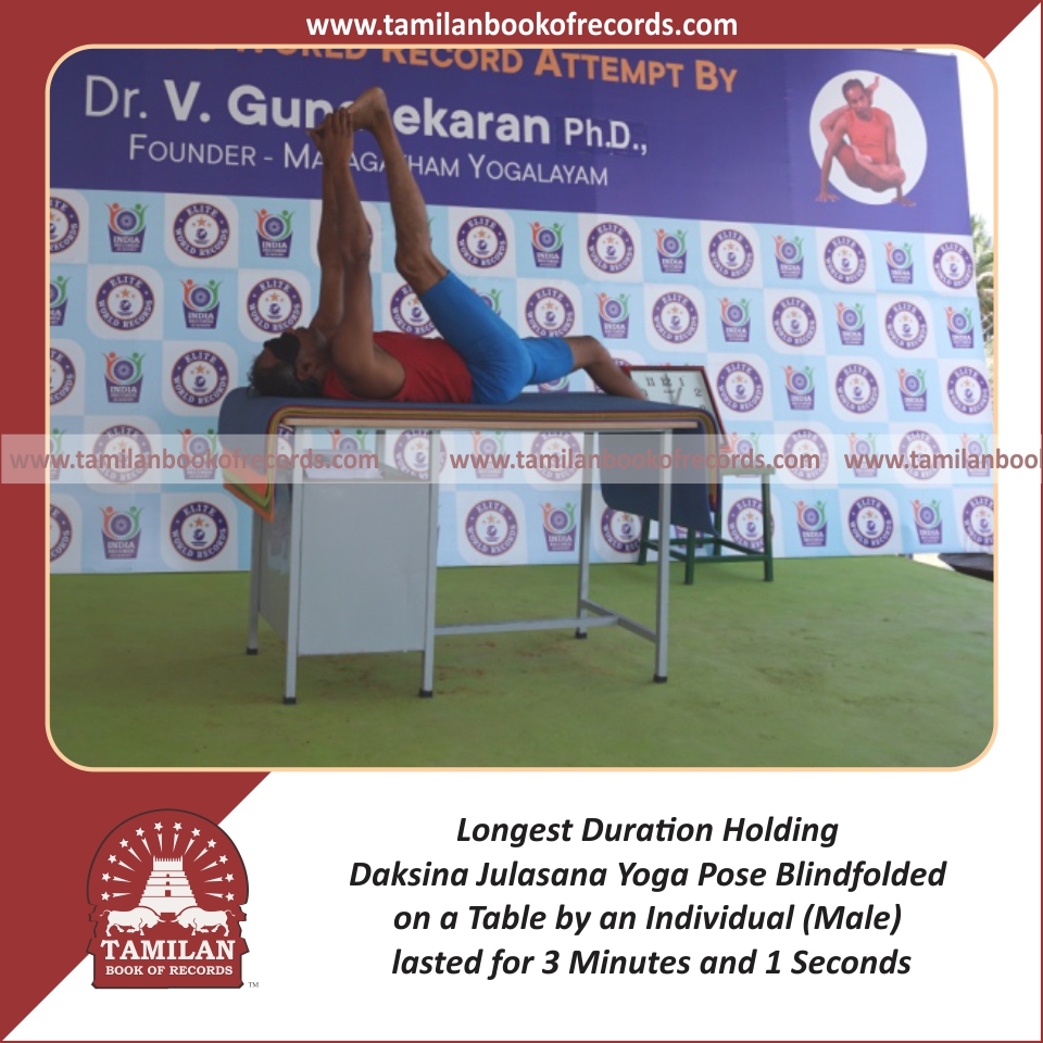 Longest Duration Holding Daksina Julasana Yoga Pose Blindfolded on a Table by an Individual (Male)