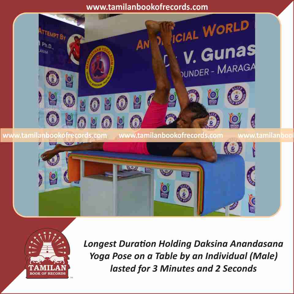 Longest Duration Holding Daksina Anandasana Yoga Pose on a Table by an Individual (Male)