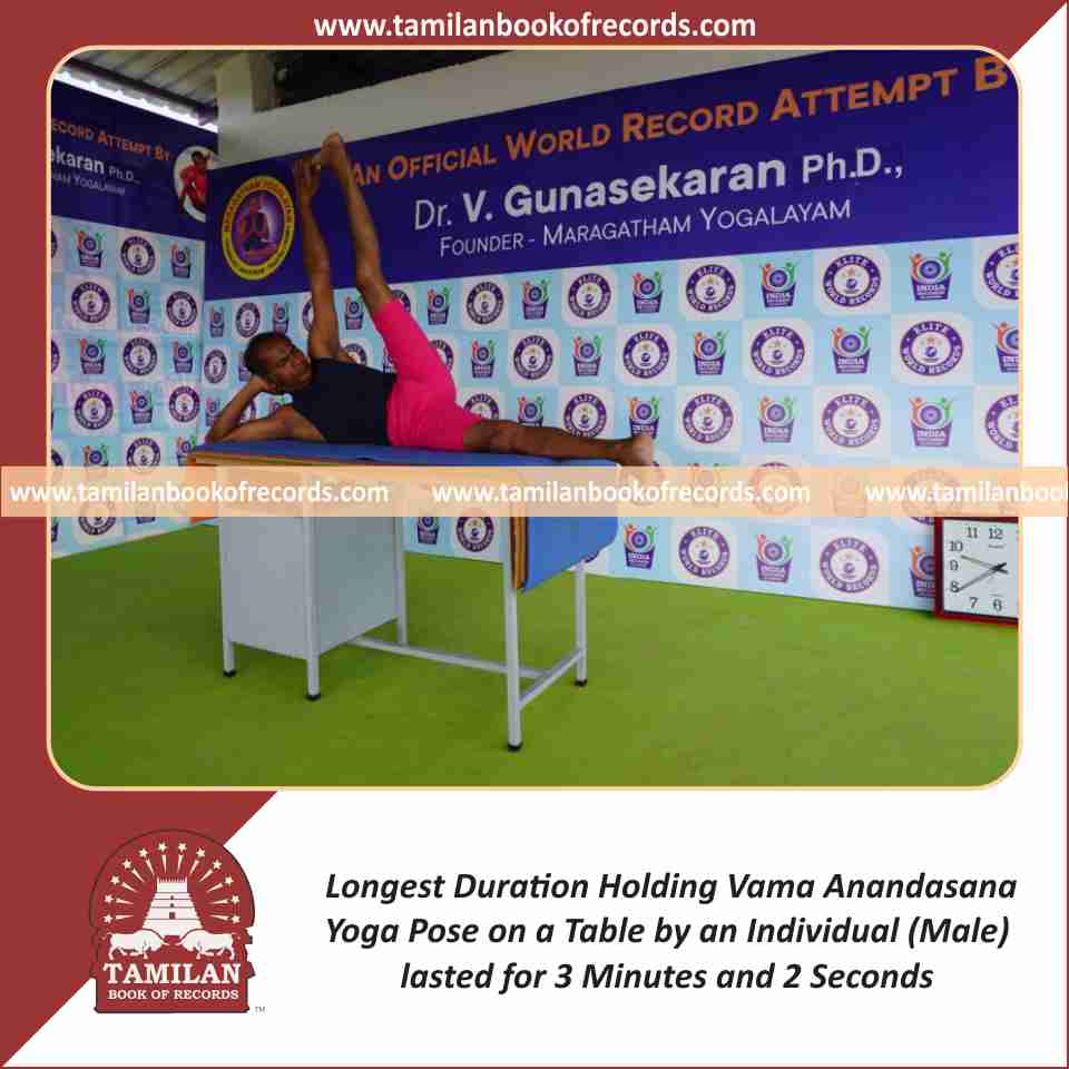 Longest Duration Holding Vama Anandasana Yoga Pose on a Table by an Individual (Male)