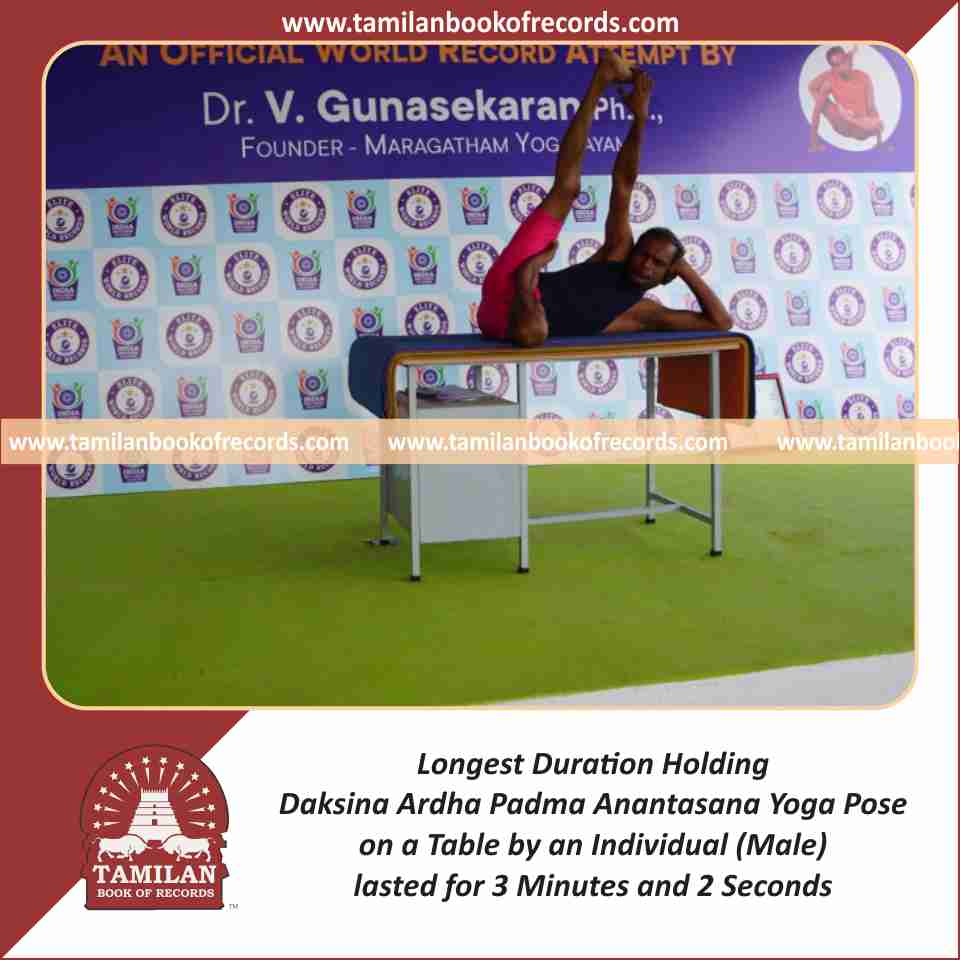 Longest Duration Holding Daksina Ardha Padma Anantasana Yoga Pose on a Table by an Individual (Male)