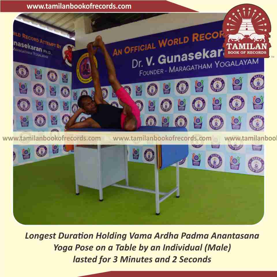 Longest Duration Holding Vama Ardha Padma Anantasana Yoga Pose on a Table by an Individual (Male)