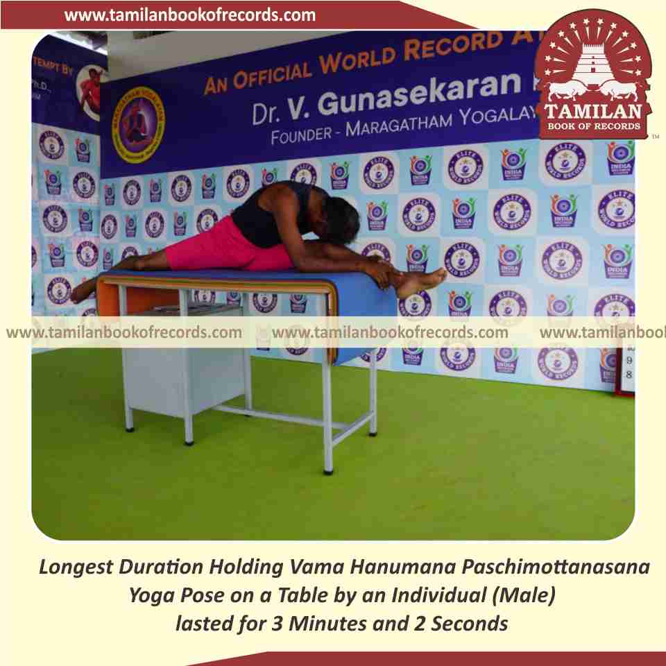 Longest Duration Holding Vama Hanumana Paschimottanasana Yoga Pose on a Table by an Individual (Male)