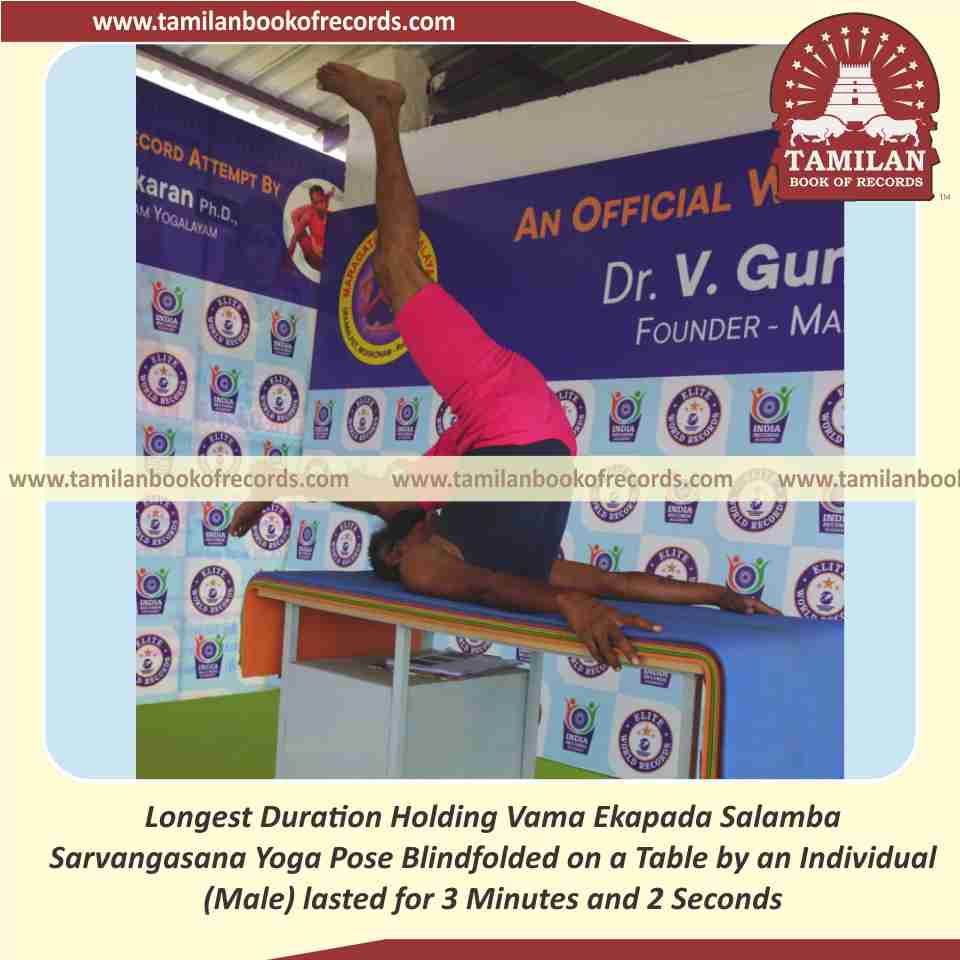 Longest Duration Holding Vama Ekapada Salamba Sarvangasana Yoga Pose Blindfolded on a Table by an Individual (Male)