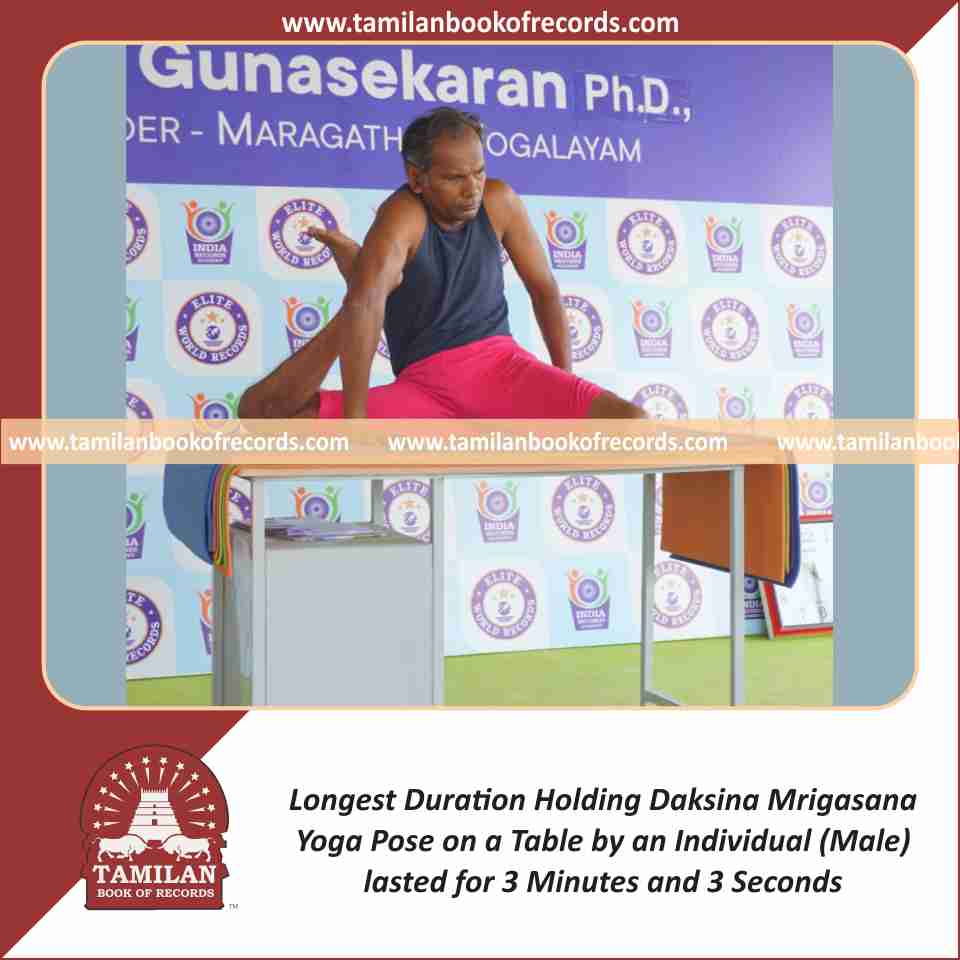 Longest Duration Holding Daksina Mrigasana Yoga Pose on a Table by an Individual (Male)