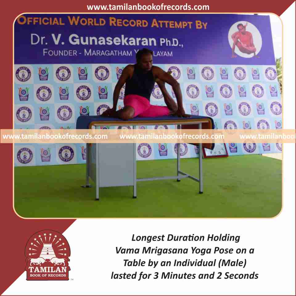Longest Duration Holding Vama Mrigasana Yoga Pose on a Table by an Individual (Male)