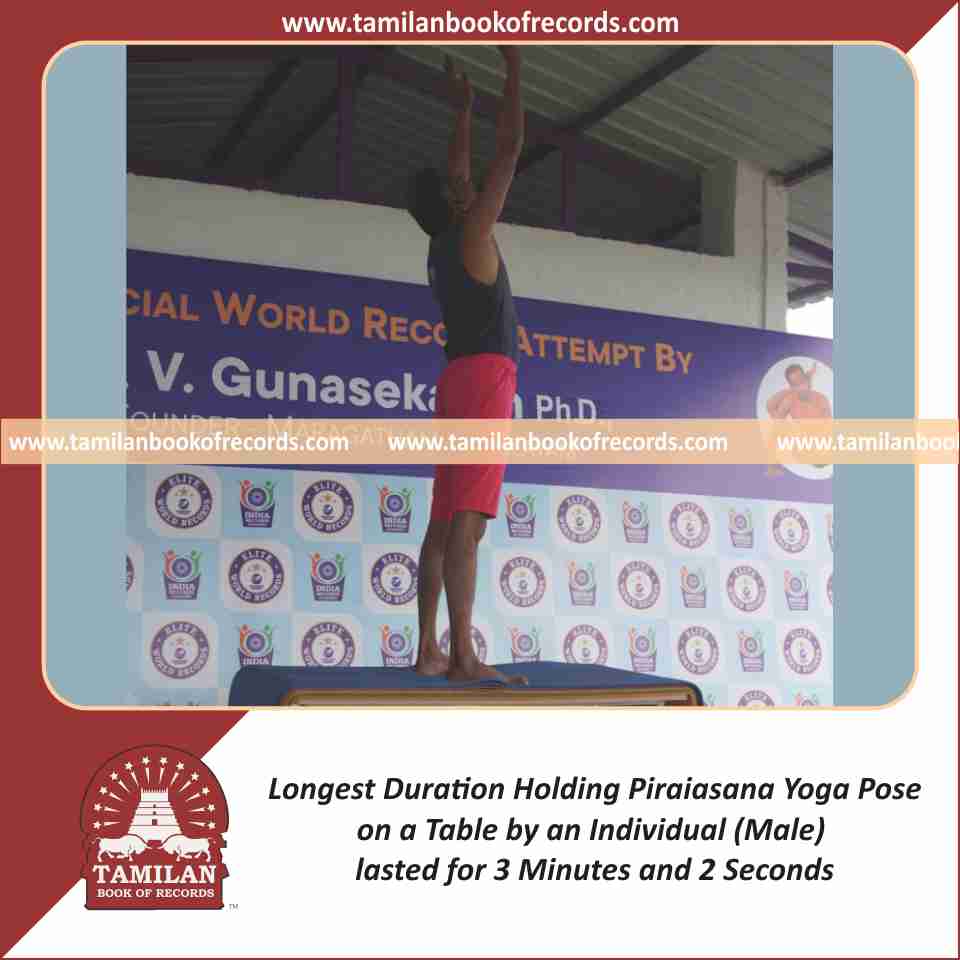 Longest Duration Holding Piraiasana Yoga Pose on a Table by an Individual (Male)