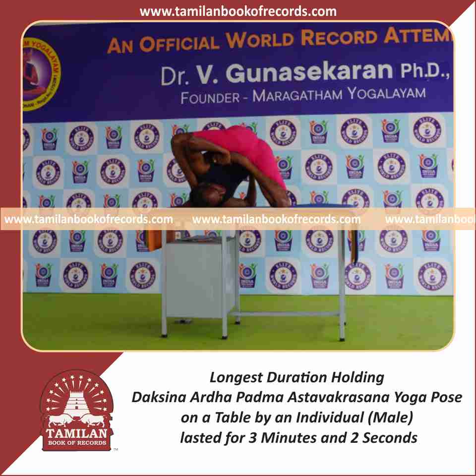 Longest Duration Holding Daksina Ardha Padma Astavakrasana Yoga Pose on a Table by an Individual (Male)