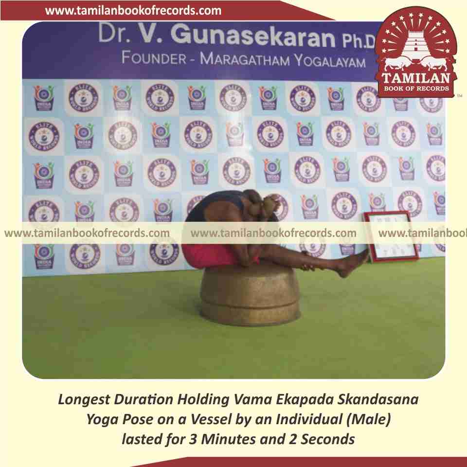 Longest Duration Holding Daksina Ekapada Skandasana Yoga Pose on a Vessel by an Individual (Male)