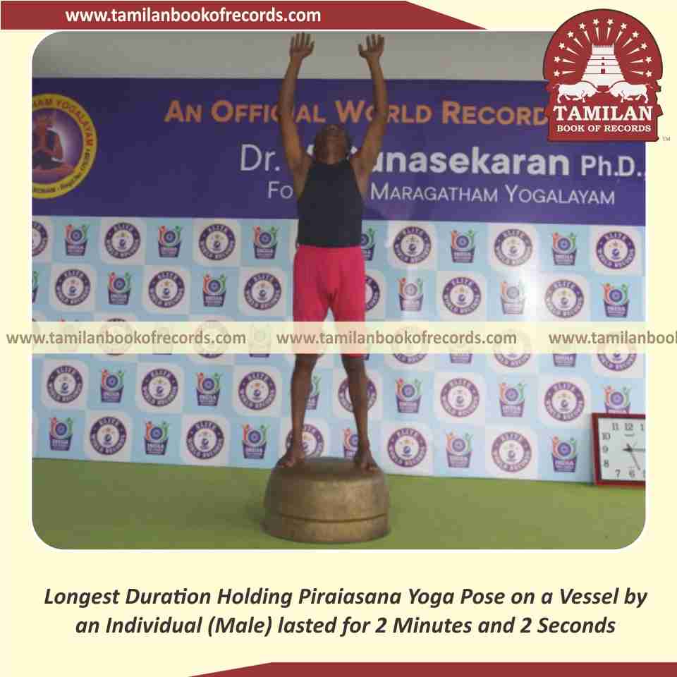 Longest Duration Holding Piraiasana Yoga Pose on a Vessel by an Individual (Male)