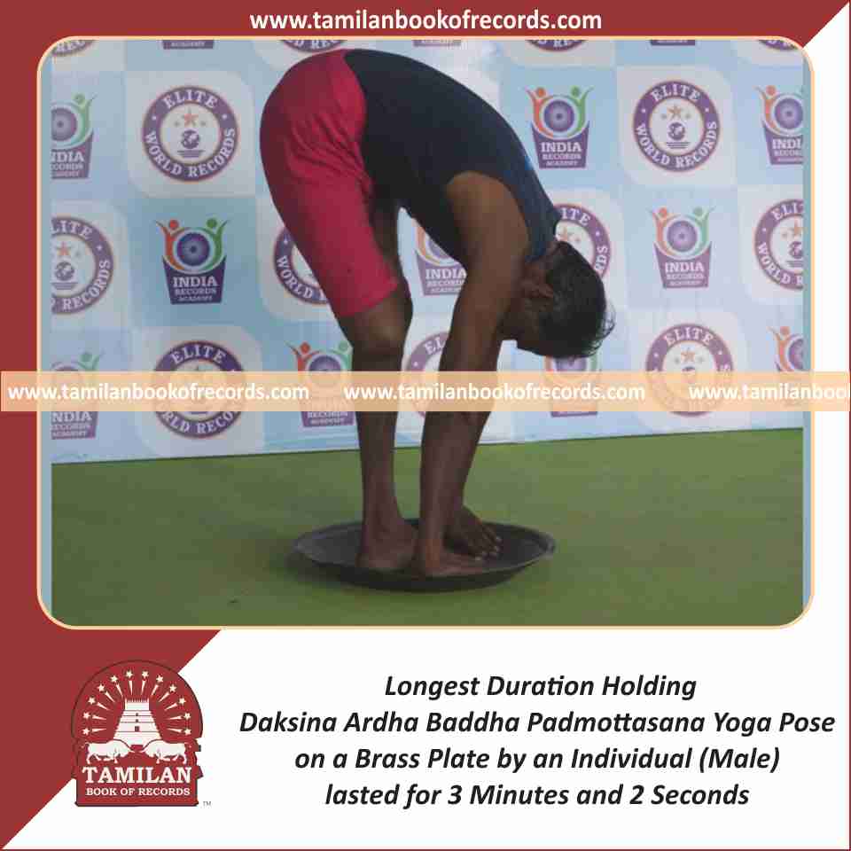 Longest Duration Holding Daksina Ardha Baddha Padmottasana Yoga Pose on a Brass Plate by an Individual (Male)