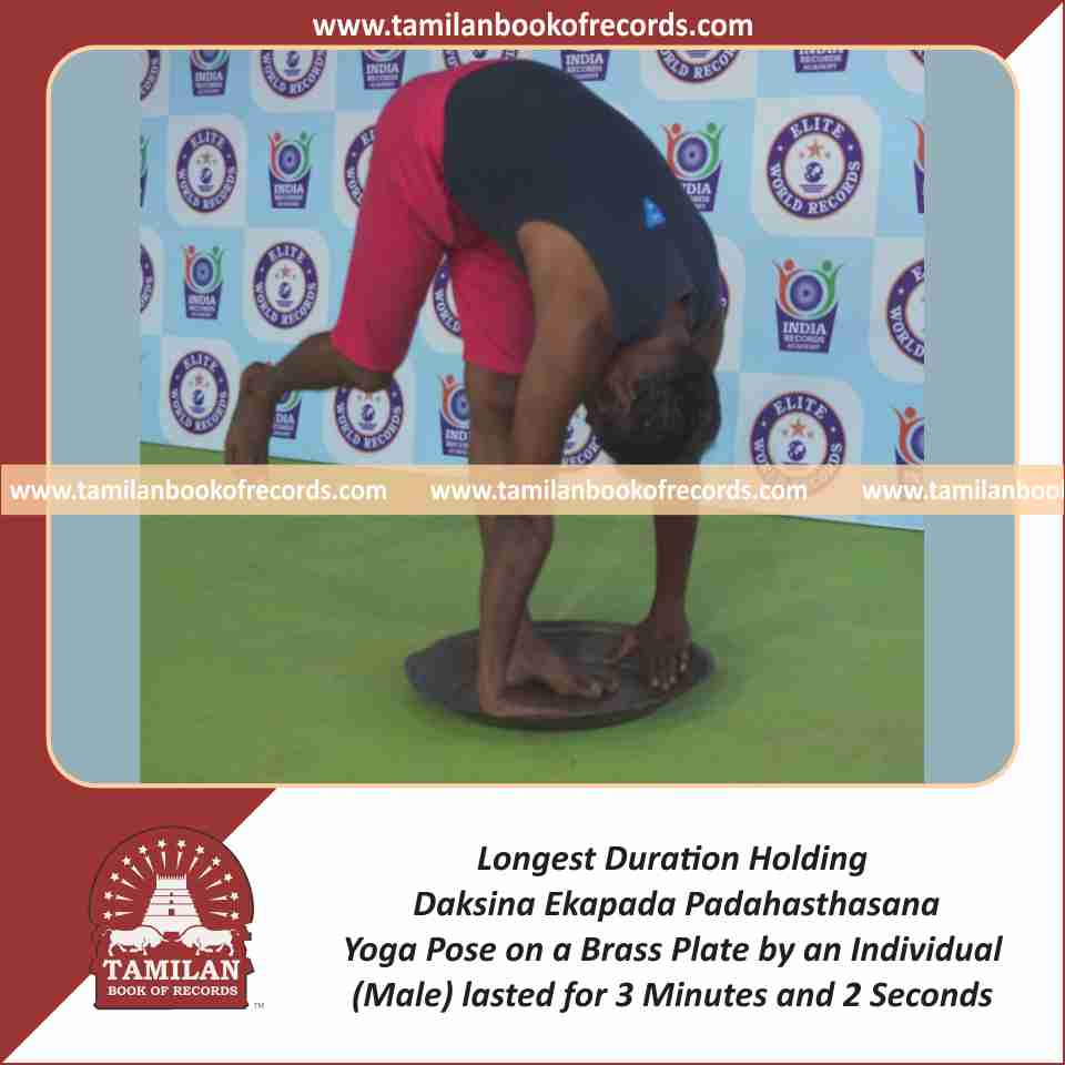Longest Duration Holding Daksina Ekapada Padahasthasana Yoga Pose on a Brass Plate by an Individual (Male)