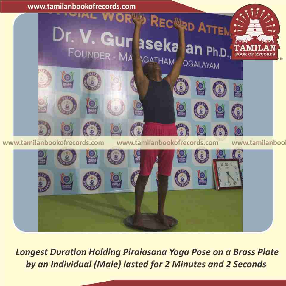 Longest Duration Holding Piraiasana Yoga Pose on a Brass Plate by an Individual (Male)