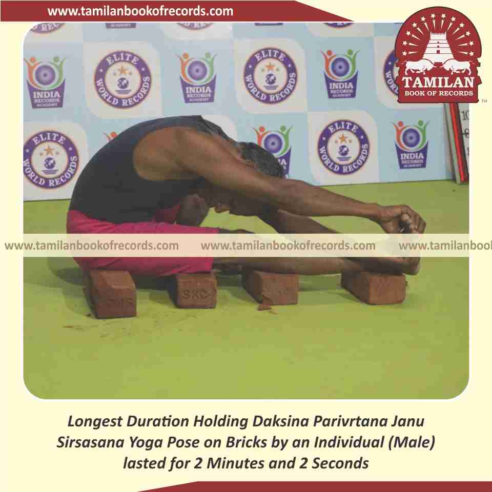 Longest Duration Holding Daksina Parivrtana Janu Sirsasana Yoga Pose on Bricks by an Individual (Male)