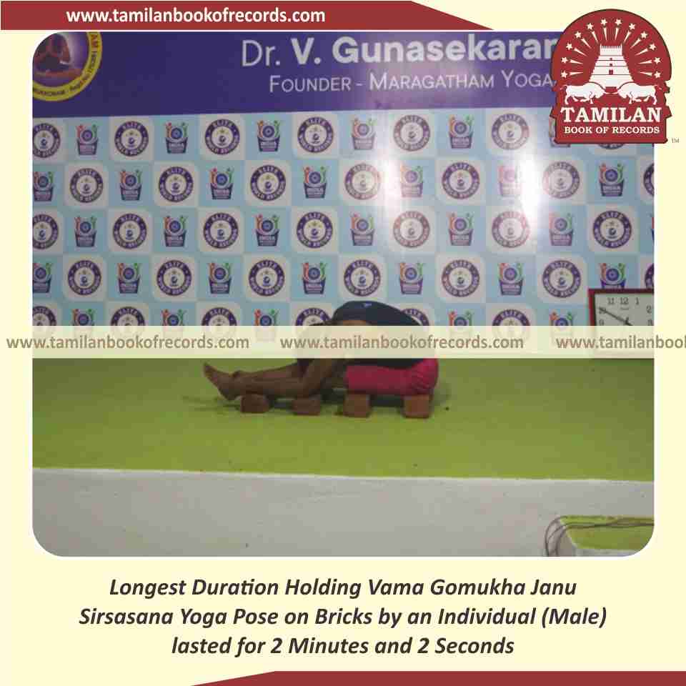 Longest Duration Holding Vama Gomukha Janu Sirsasana Yoga Pose on Bricks by an Individual (Male)