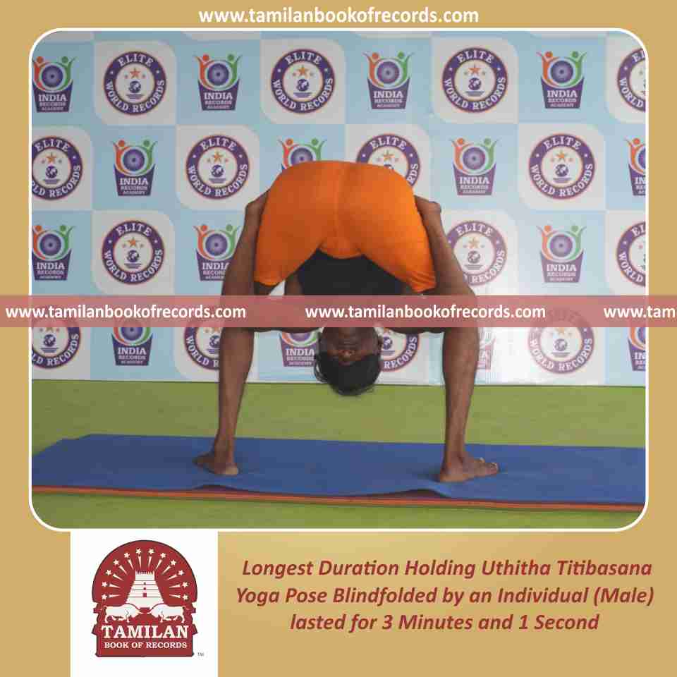 Longest Duration Holding Uthitha Titibasana Yoga Pose Blindfolded by an Individual (Male)