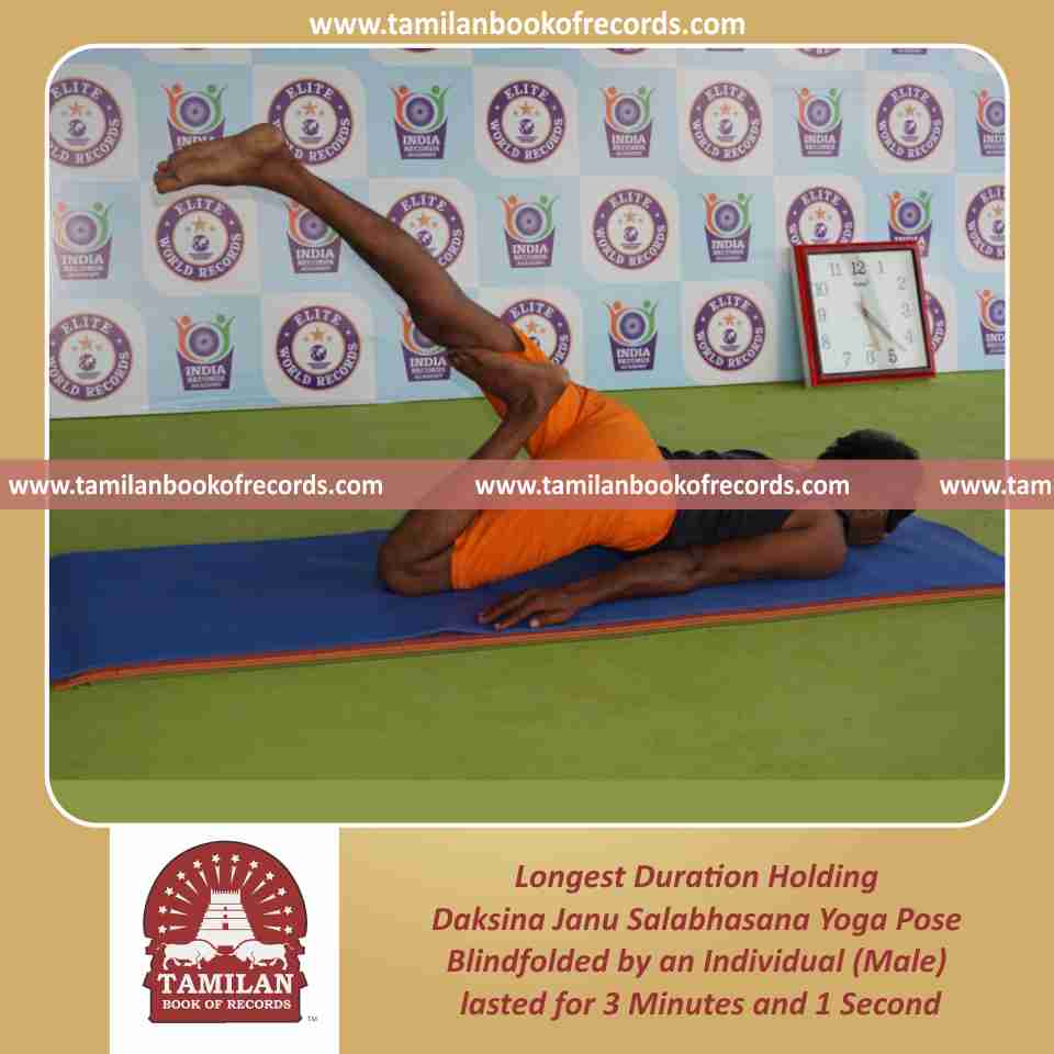 Longest Duration Holding Daksina Janu Salabhasana Yoga Pose Blindfolded by an Individual (Male)