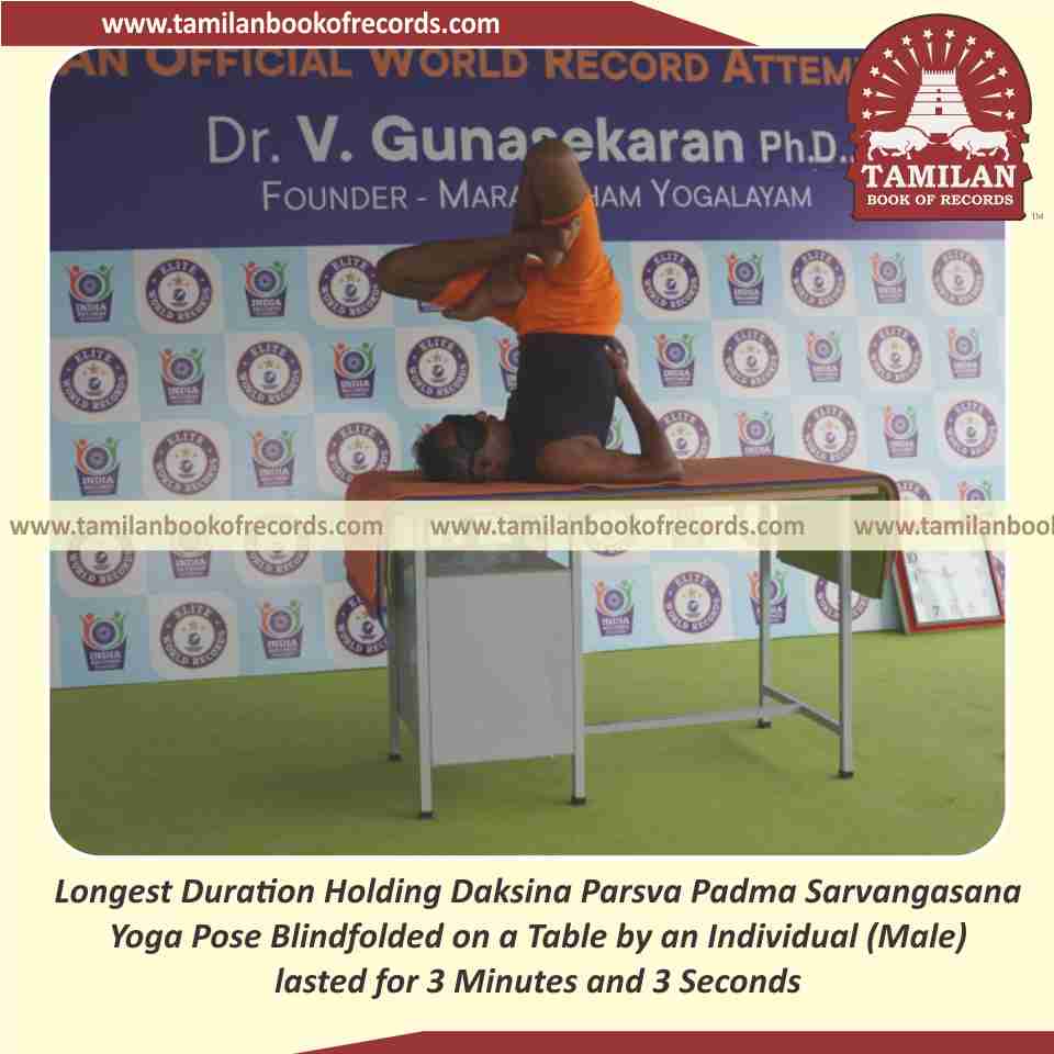 Longest Duration Holding Daksina Parsva Padma Sarvangasana Yoga Pose Blindfolded on a Table by an Individual (Male)