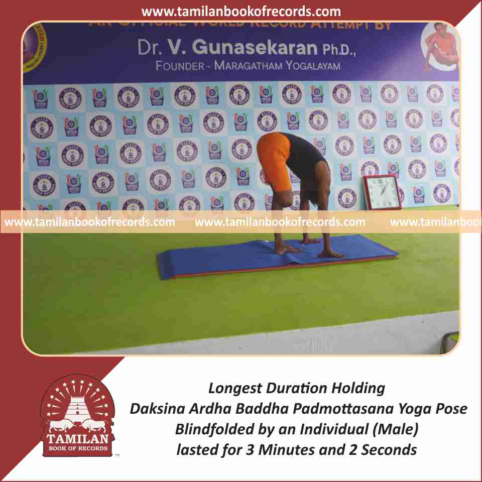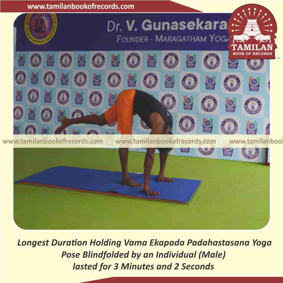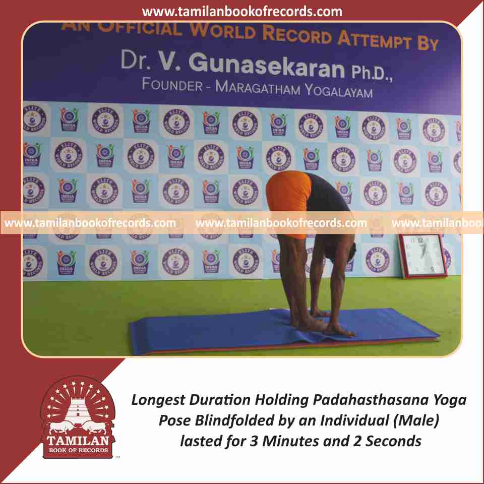 Longest Duration Holding Padahasthasana Yoga Pose Blindfolded by an Individual (Male)