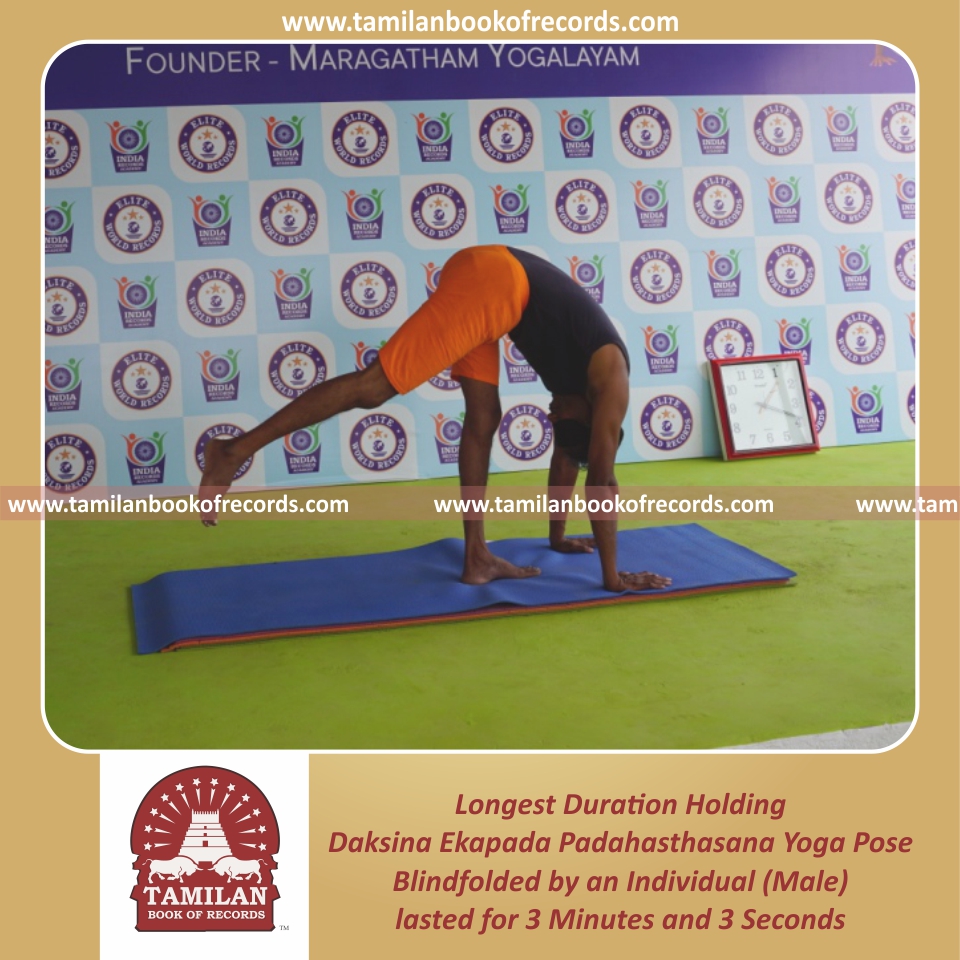 Longest Duration Holding Daksina Ekapada Padahasthasana Yoga Pose Blindfolded by an Individual (Male)
